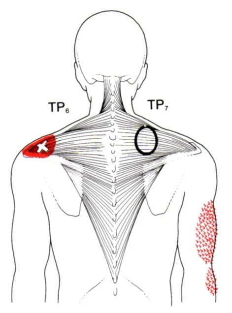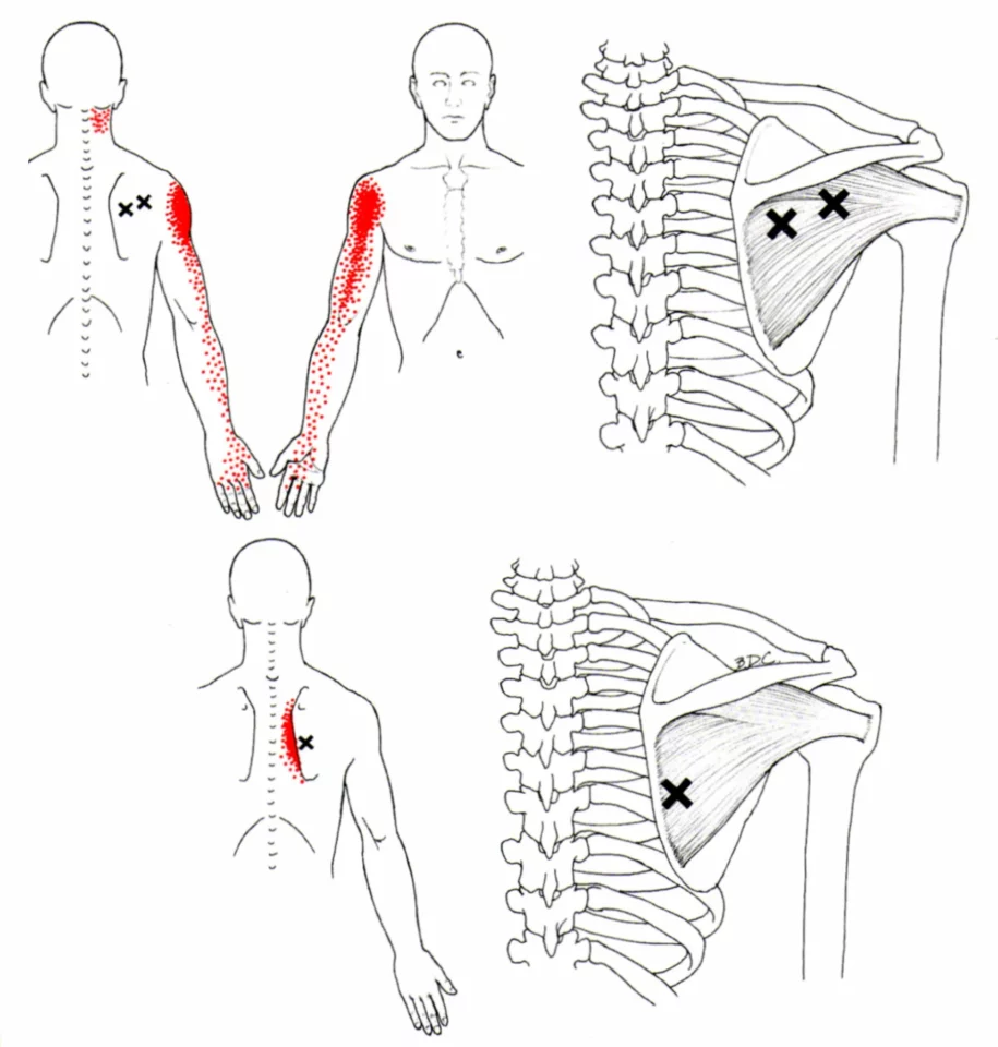 Musklene mellom skulderbladene (blant annet rhomboideus og deler av trapezius) får ofte triggerpunkter ved mye stillesitting eller når vi «synker sammen» foran PC. Litt som Infraspinatus og Teres minor.